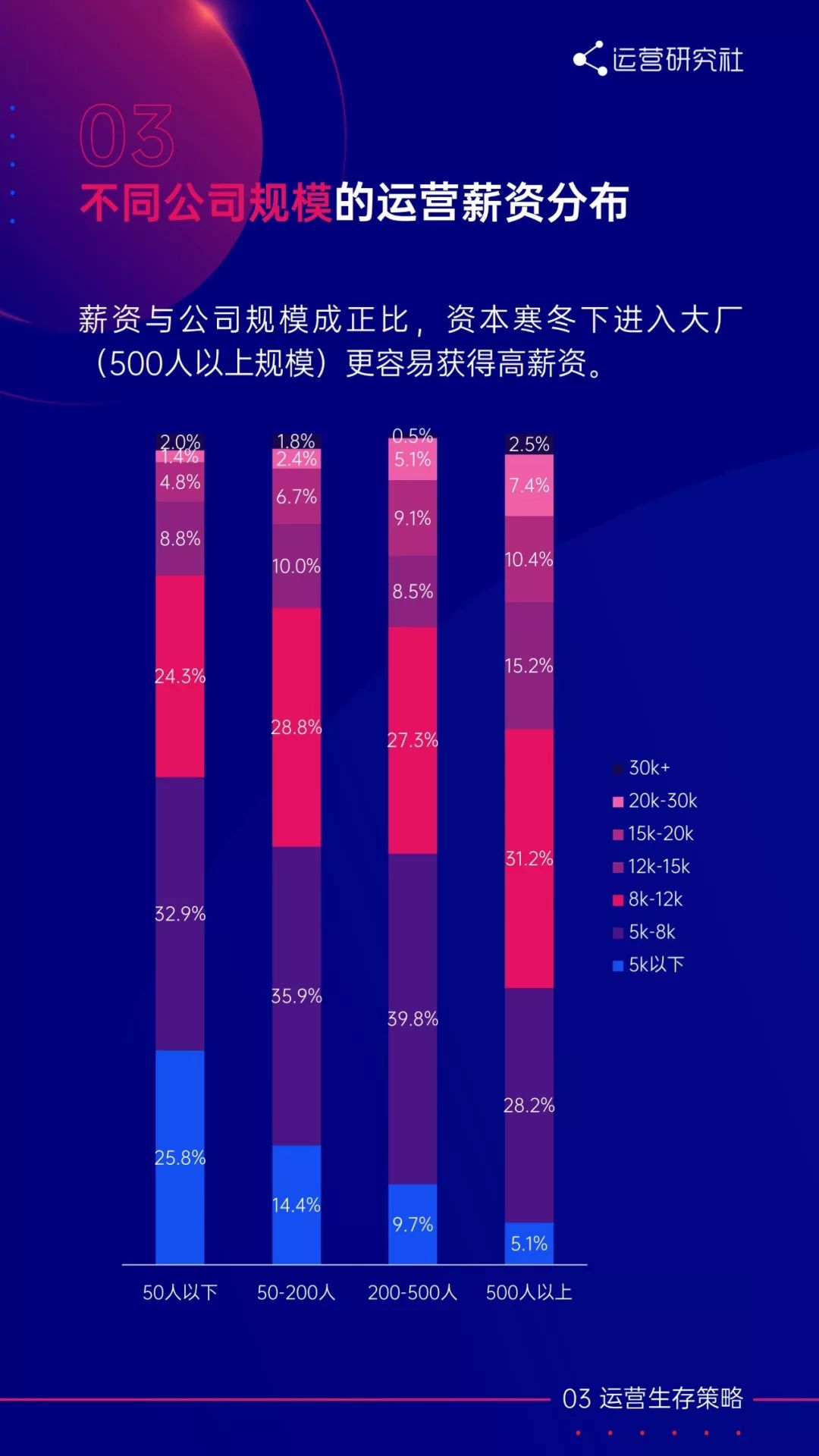 薪资与公司规模成正比,资本寒冬下进入大厂(500人以上规模)更容易获得高薪资;