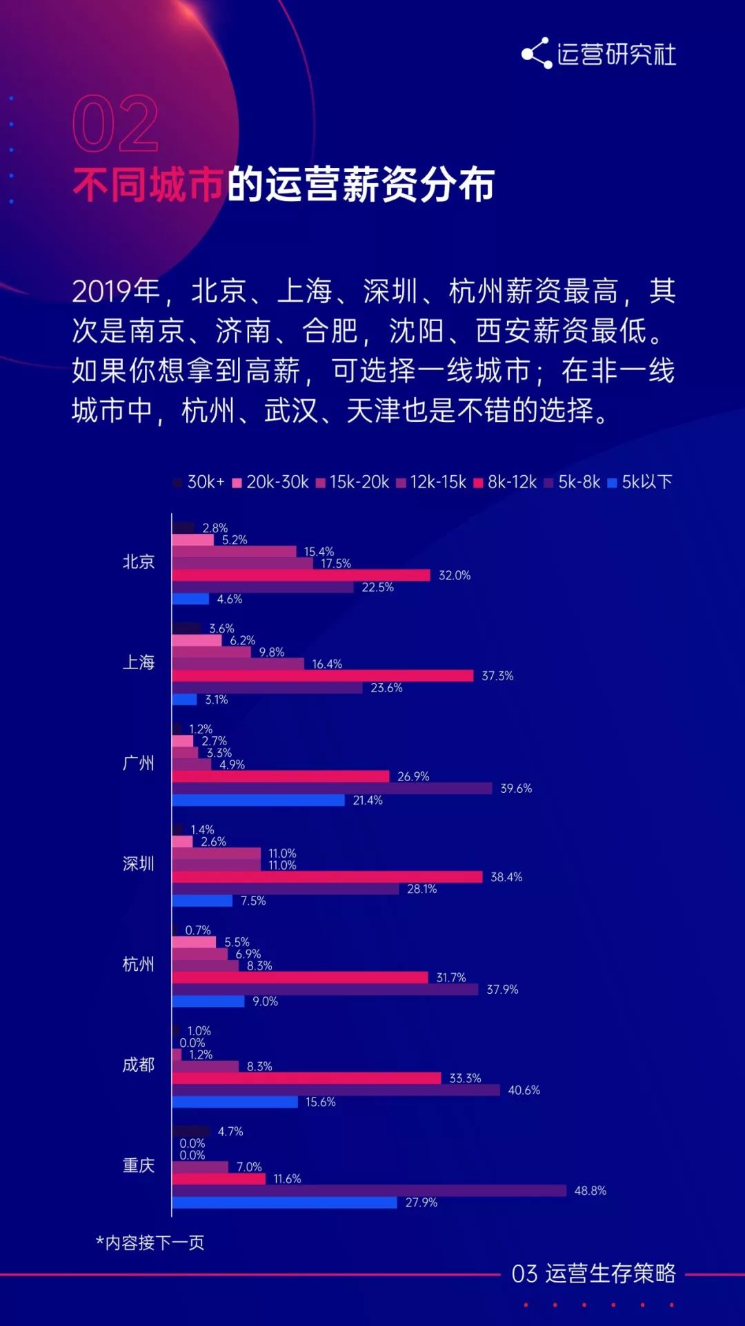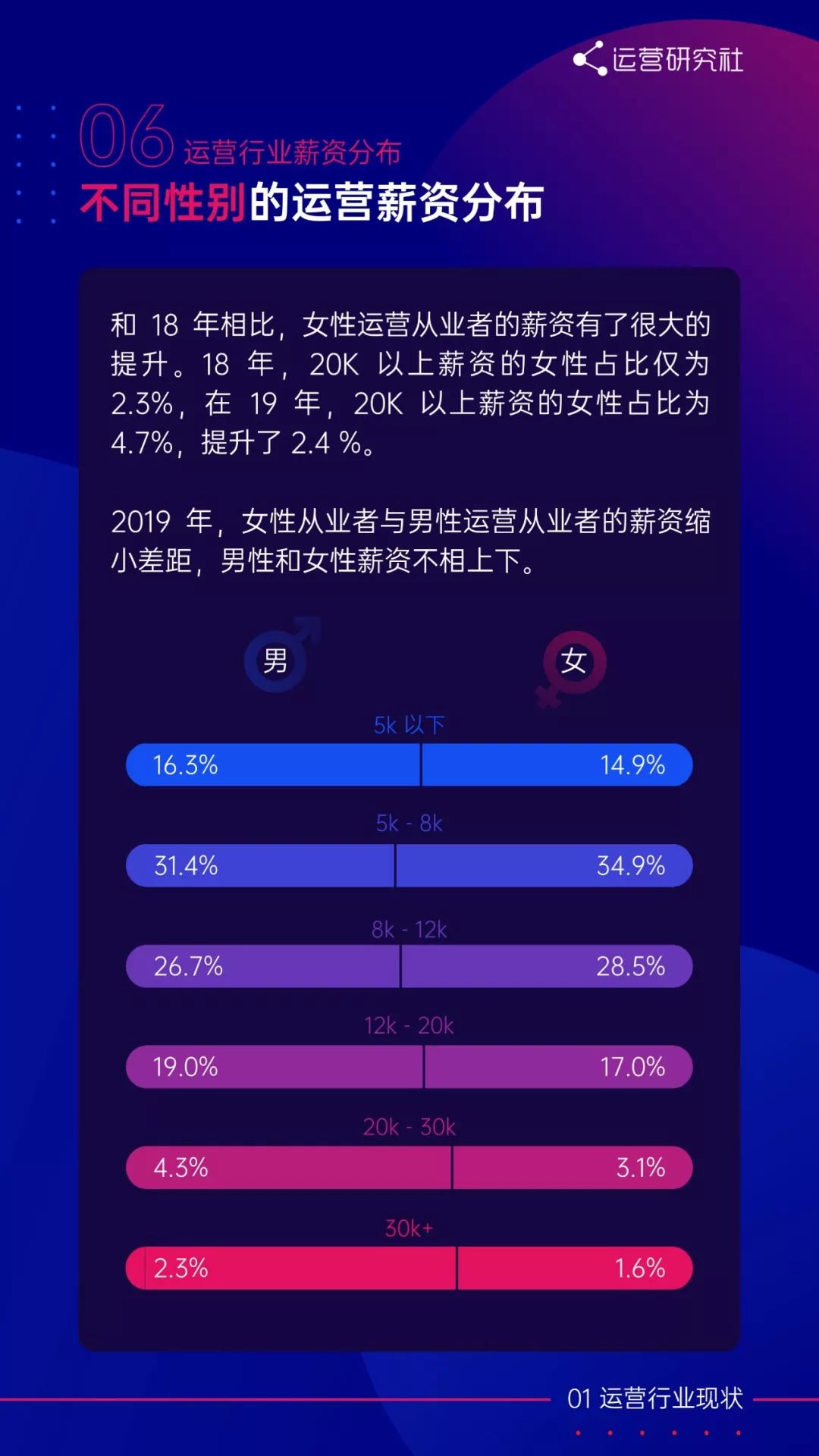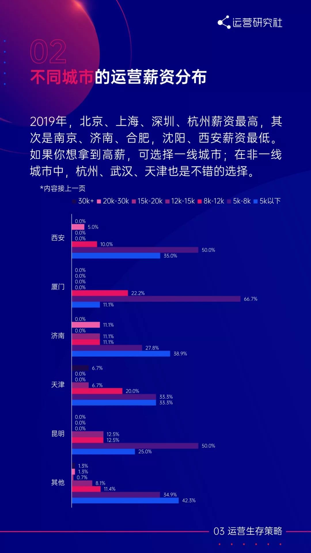 编者按:本文来自微信公众号“运营研究社”(ID:U_quan),作者 陈维贤。36氪经授权转载。原题目《《2019运营生存现状白皮书》:超50%运营月薪8k+,“996”居然这么少?》