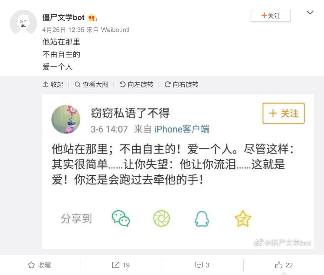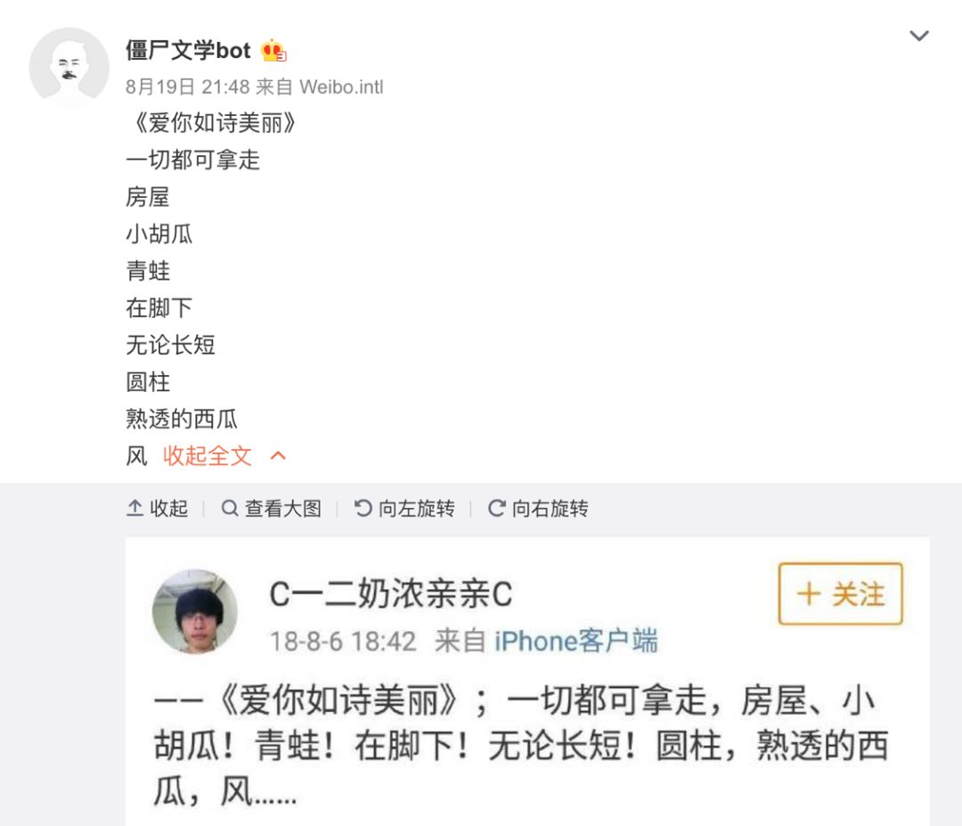你们最近发现了没?社交媒体上的僵尸号竟开始搞创作了,逻辑混乱,但情绪饱满:
