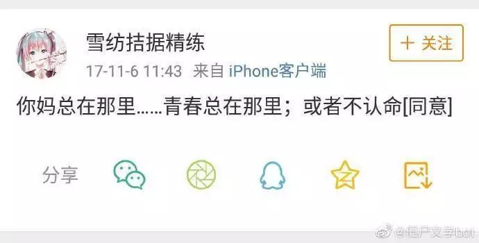 甚至还有人总结了一整套“僵尸创作方法论”:文字力求乱中有序,标点最好用错几个,头像必须又糊又土。