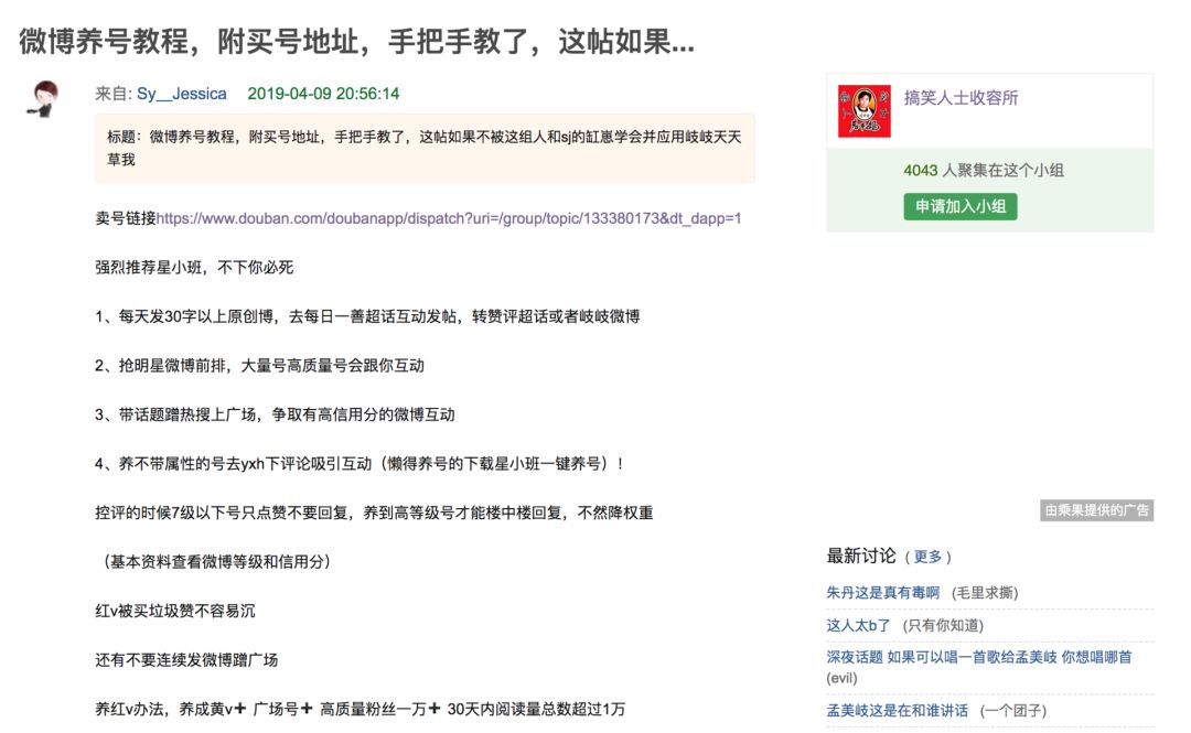 而另一种则是饭圈女孩,“艹数据”是衡量对哥哥热爱的量化指标,因此他们成了这些僵尸粉作坊的大客户群。作为物美价廉、便于获取的黑科技,这些刷量工具被饭圈女孩在自己的社群里孜孜不倦地分享给战友们。