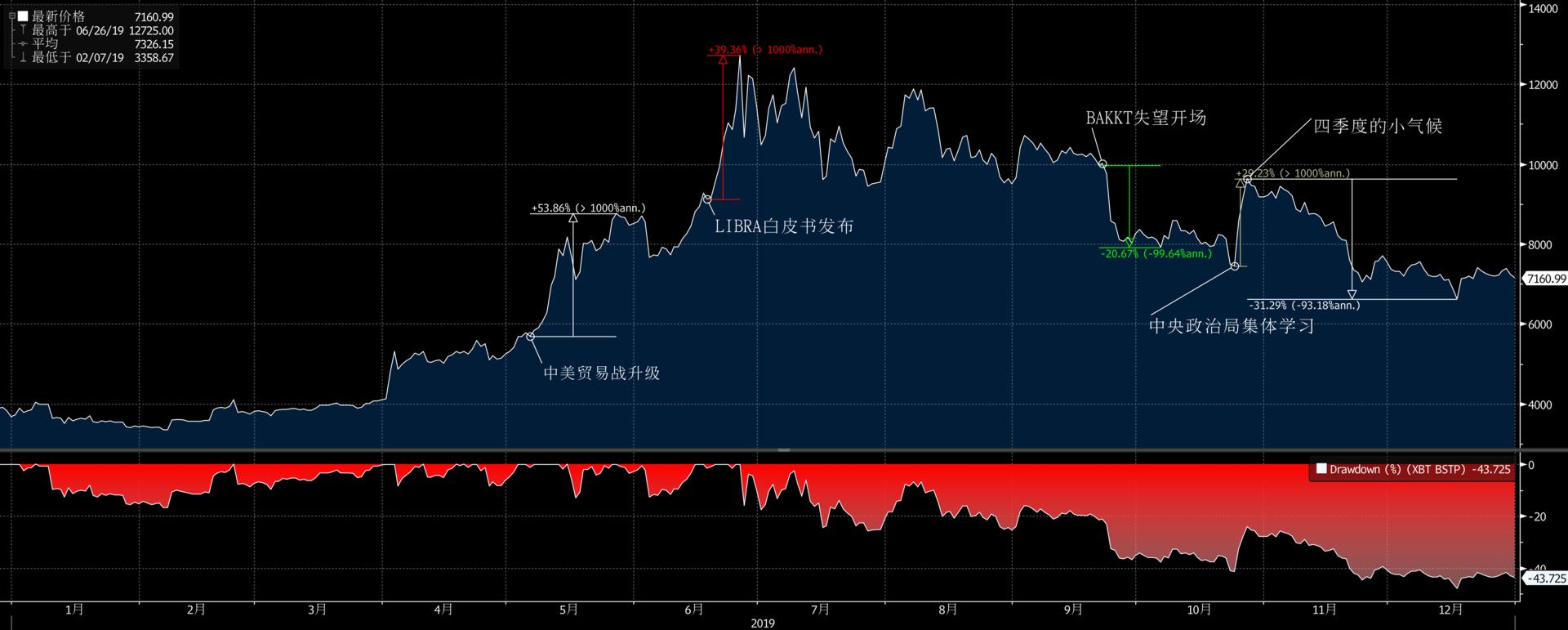 在Libra白皮书发布、中央政治局领导集体学习、Bakkt上线等多个事件的驱动下,比特币经历了暴涨暴跌,但偏离过后,比特币往往总是能够重新走回轨道中。