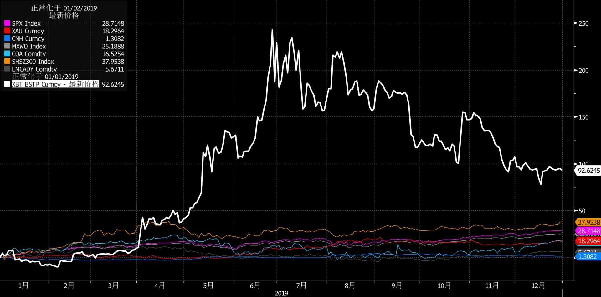 2019年第四季度,比特币和其他的主流资产又脱钩了,这是因为第四季度发生了两个事情: