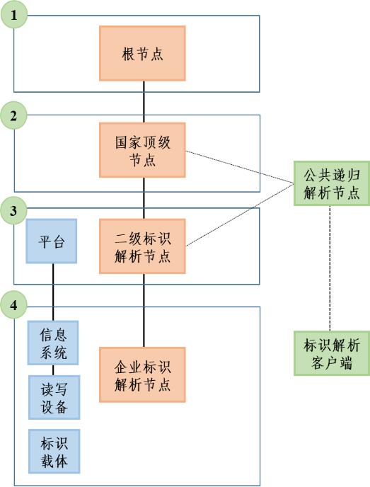 跟DNS架构类似,我国工业互联网标识解析体系由国际根节点、国家顶级节点、二级节点、 企业节点、递归节点等要素组成。