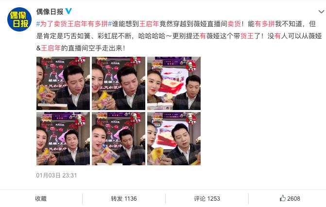 除了薇娅这位TOP级直播达人的吸引力,网友更多的是冲着“王启年”而来,如何将王启年的人设贯彻到底,是传播中至关重要的部分。