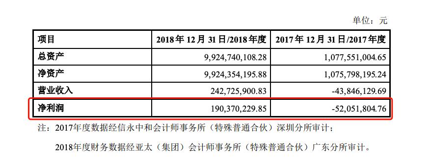 尽管国调招商2017年净利润亏损5205.18万元,但是2018年扭亏为盈,净利润飙升至1.9亿元,对应营收2.42亿元。