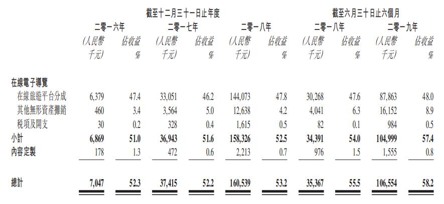 所谓电子导览业务,与其说是科技业务,倒不如说是旅游产品的内容提供者。招股书显示,从2016年至2019上半年,驴迹科技的所有雇员中,人数占比最高的一直都是内容制作团队,这主要是因为公司近些年一直都在拓宽全国景区的覆盖,景区数量由2016年的527个增长至2019年上半年的8304个。
