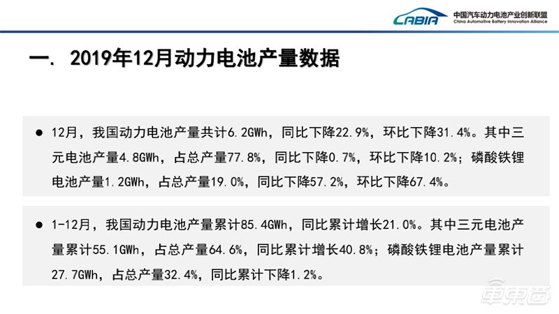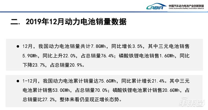 ▲2019年12月与全年动力电池产量数据(按材料划分)