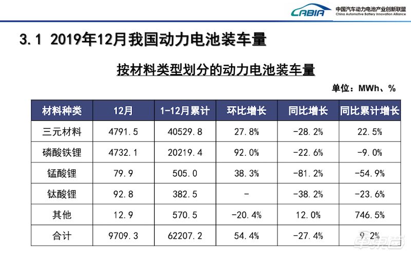 ▲2019年12月与全年动力电池装车量数据(按材料划分)