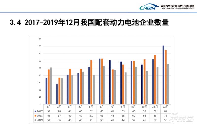 从这一情况可以看出,宁德时代的头部玩家地位进一步巩固,市场份额占比从2018年40.7%上升至2019年的50.5%,强者愈强。而动力电池装机配套的企业却从去年的89家下降至今年的79家,行业洗牌加速。