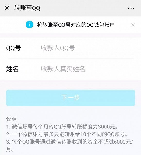微信可以向QQ转账了,单笔最高3000元