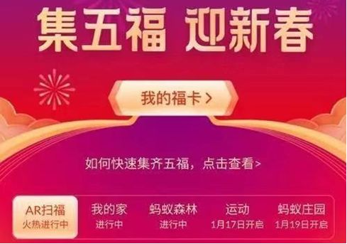 1月13日,支付宝官方微博宣布,一年一度的春节集五福活动正式启动。