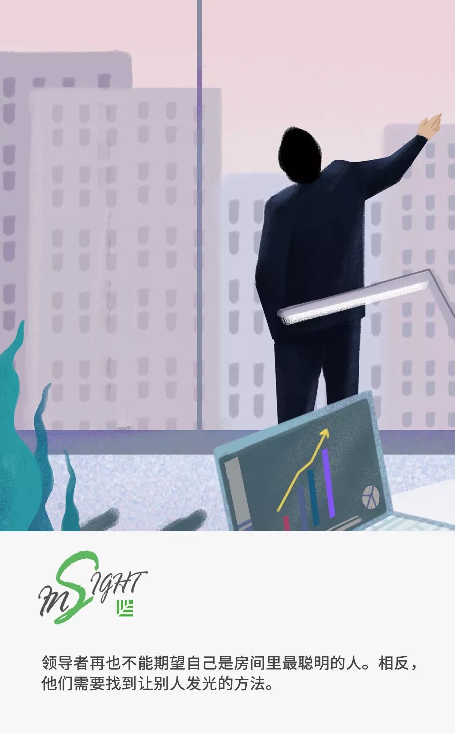 这些转变将挑战领导者的工作方式,管理者再也不能期望自己是房间里最聪明的人。相反,他们需要找到让别人发光的方法。