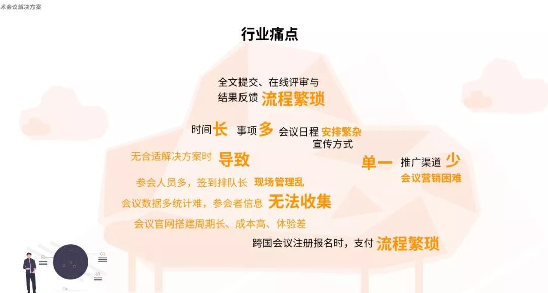 以上四种维度的解决方式,虽然能够简单地进行学术会议管理,但是并没有从根源上进行解决问题。对于一些刚入行的新人而言,效率、管理、成本等这些难题仍是一座大山。