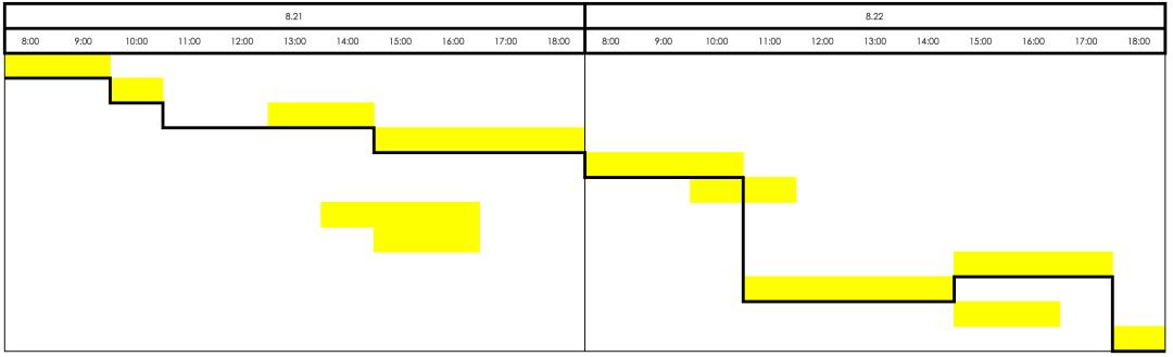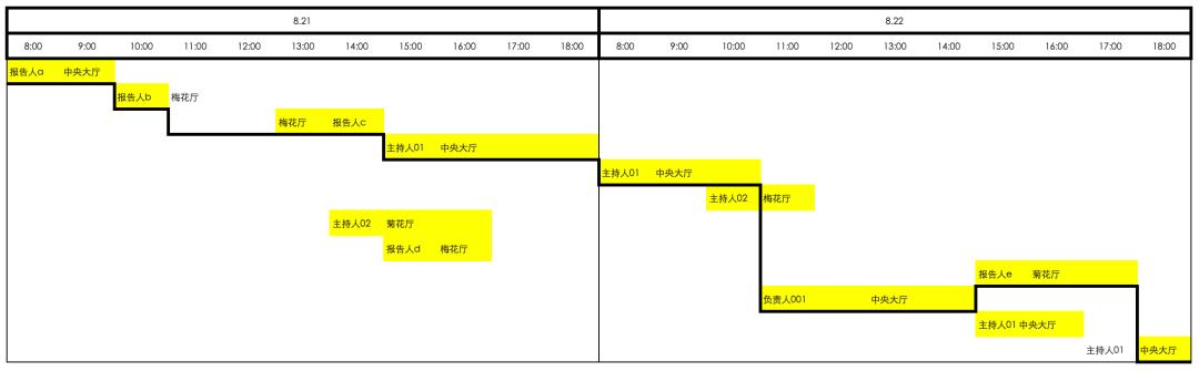学术会议突出的一个难点就是会场多,大会日程多。因此在大会日程编排上难免会出现会场重复、时间冲突等问题。通过利用甘特图,可进行调整和有效的进行日程的编排和调整。