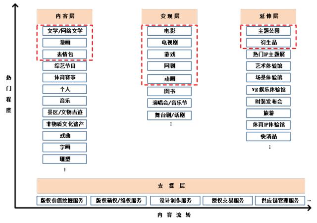 第二,IP产业链支撑层如版权价值挖掘服务、确权维权服务、交易服务趋于完善,提供IP产业链开发的保障。