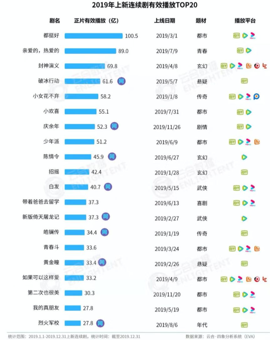 根据云合数据显示,2019年上新连续剧有效播放TOP20中,有十一部由书改而来。其中,又有超过半数为网文小说。网文依旧是剧集市场IP、剧本的主要来源。