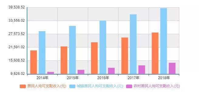 中国近五年城镇、农村居民人均可支配收入变化图,图片来源:中国统计局