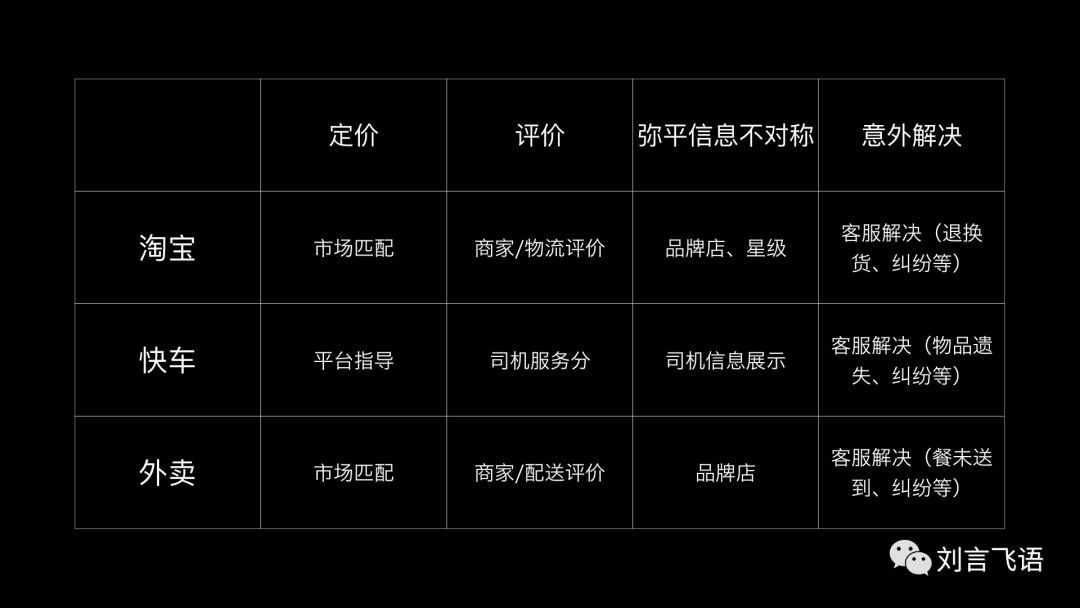 从消费侧来说,要做定价指导、要给评价体系、要尽量弥平信息不对称、要提供意外解决方案。
