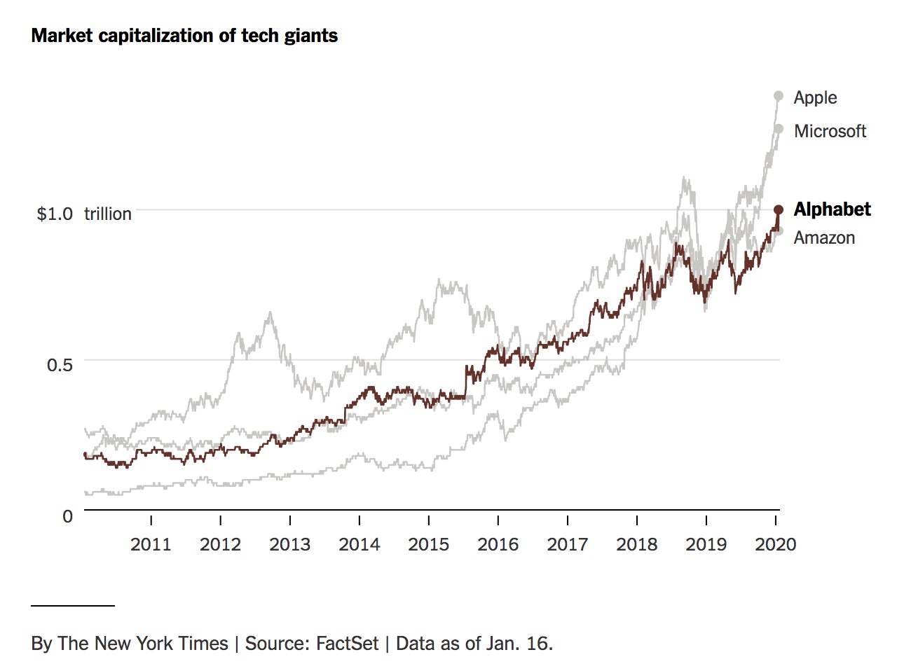 最前线 | 劈柴哥就任CEO一个月,谷歌母公司Alphabet市值破了万亿美元