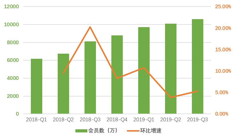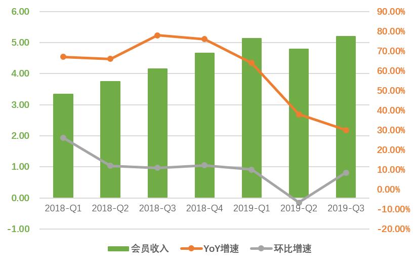 ↑ 会员的新增逐步进入停滞,会员收入的增速也出现了下滑的趋势