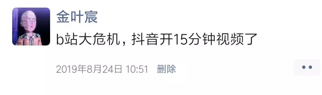 抖音并不用直接去争夺B站目前的忠诚用户,抖音争夺的是B站未来的发展空间,就像当初抖音对快手做过的一样。而相对之下,当时抖音对快手是后来居上后发先至,而今天的抖音对B站就是滚滚洪流了,何况还有个快手。