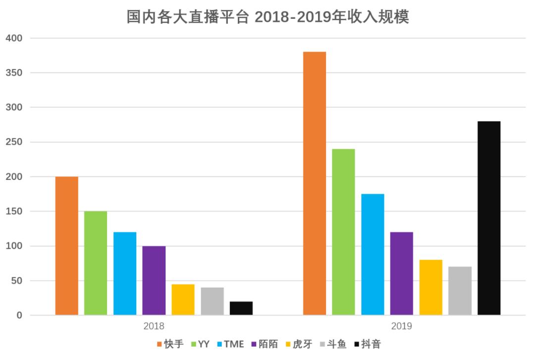 实际上,据我得到的(不可靠)信息,快手的直播收入规模在2019年Q3已经达到了单月30亿人民币的规模,而抖音在年底基本追上了这个水平。而抖音和快手目前一个月的直播收入,比虎牙和斗鱼一个季度的直播收入还多。