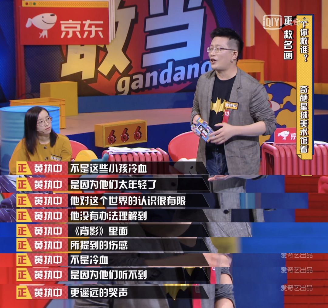 尽管后来这个略显文艺的说法被李诞戏谑地拆解和否定为其实是“想象的哭声”,但不得不说黄执中将整场辩论提升到了另一个高度,让人引发深层次的思考。