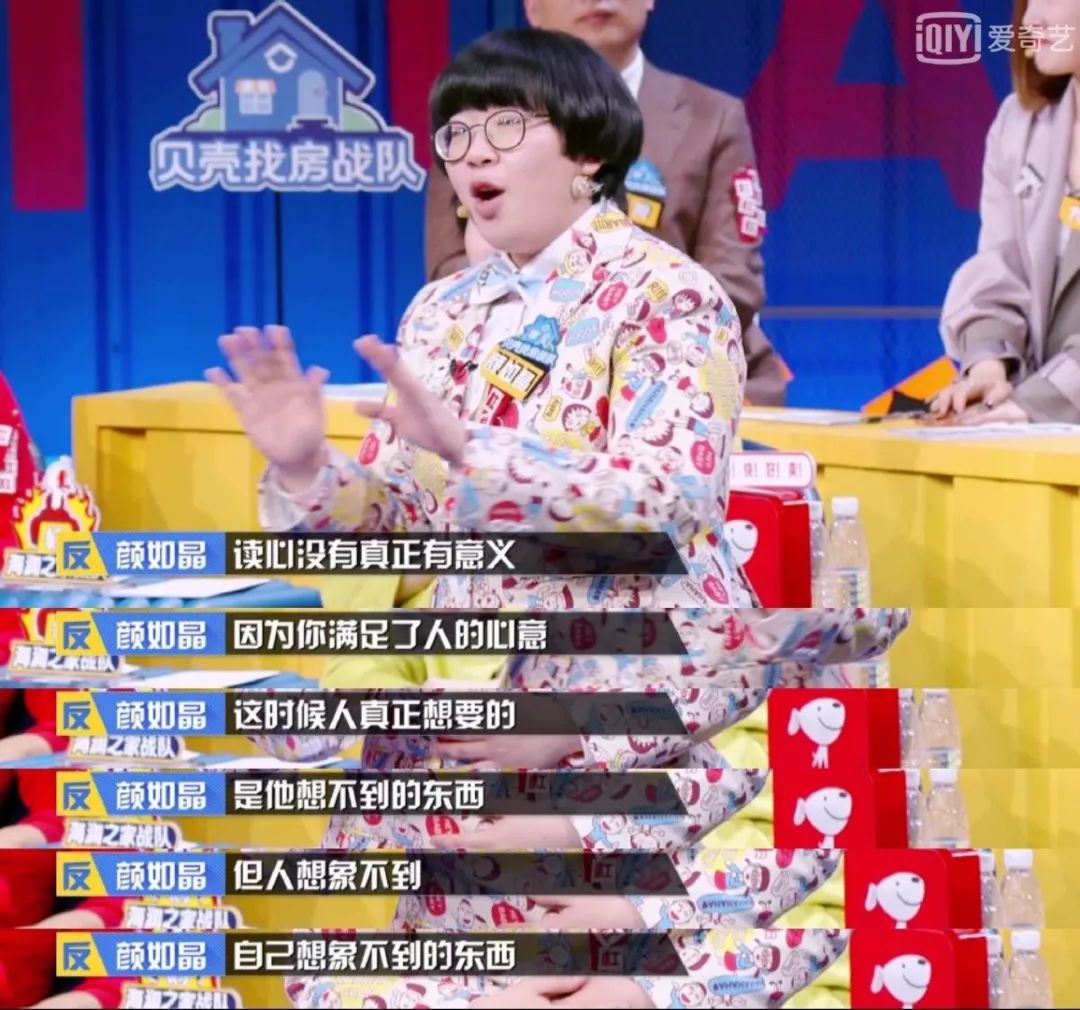 在《奇葩说》的舞台上,有些辩手的发言也达到了出其不意的效果,比如颜如晶。
