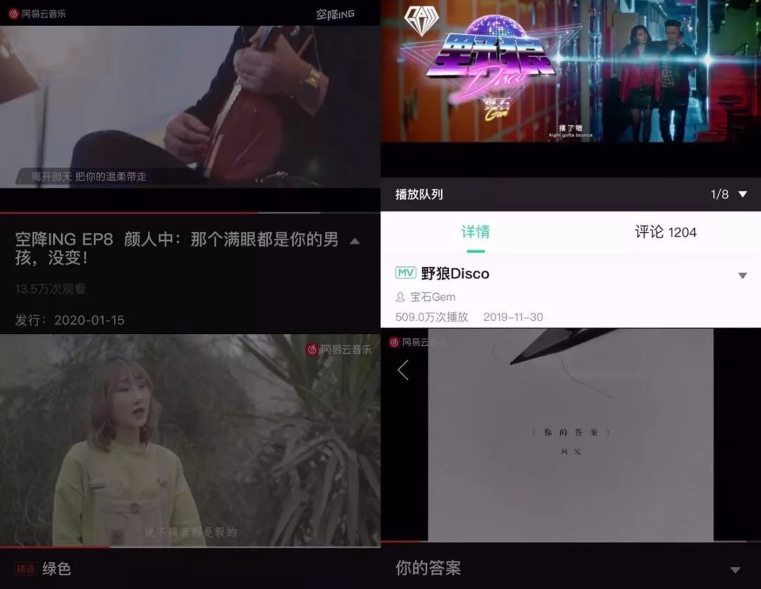 不过对比大部分视频可以发现,在网易云音乐、QQ音乐上的歌曲,相比短视频平台更注重专业度,歌曲更加完整与成熟、视频制作也更加精良,很多音乐人也会选择在这些平台上首发自己的新歌或翻唱歌曲,利用平台的资源扶持与粉丝积累,歌曲也能更容易被传播。