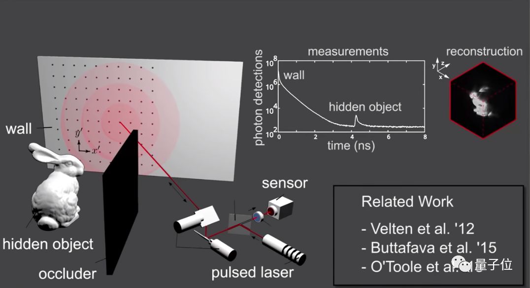 这项来自斯坦福、莱斯大学、普林斯顿和南卫理公会大学等高校的最新研究,仅采用商用相机和标准指示器中的激光光源,就隔着1米远,利用AI看穿了拐角里1厘米字母的模样。