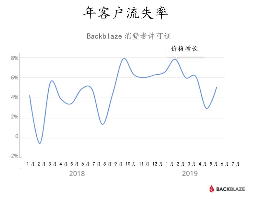 图注:从2018年1月到2019年7月,客户流失率增长了7%。