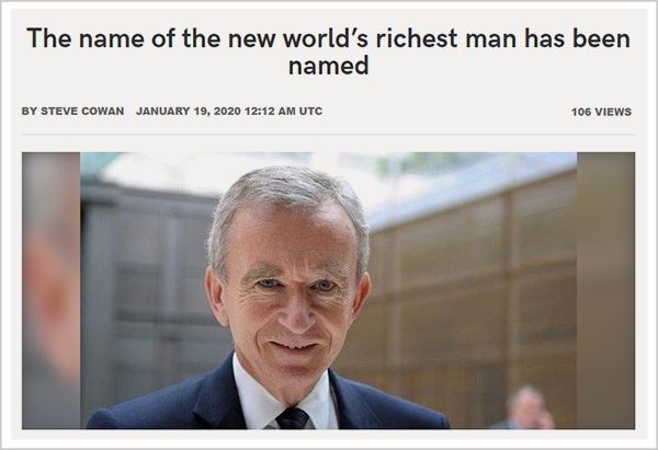 昨日,奢侈品巨头LVMH掌门人阿尔诺击败贝佐斯,成为新晋世界首富。
