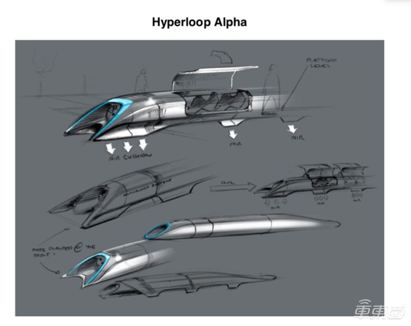 ▲Hyperloop Alpha中的超级高铁手绘草图