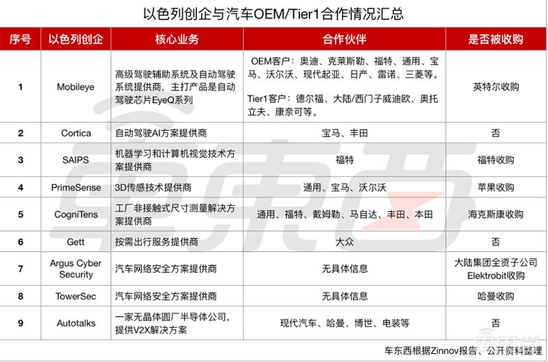 ▲以色列创企与OEM/Tier1合作情况一览表