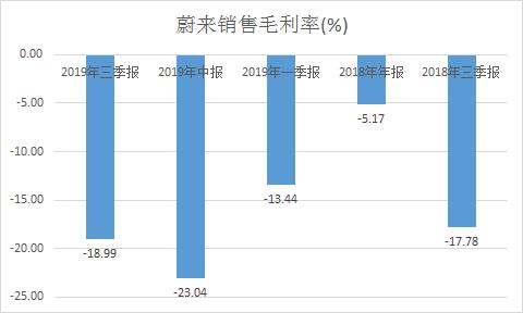 由于每辆车制造都还要支付给江淮一笔代工费,蔚来单车制造的可变成本这部分居高不下,而在没有规模效应的情况下,导致尽管蔚来汽车的销售均价并不低,但毛利率始终没有转正:到2019年3季度,蔚来每造一辆车仍然亏掉将近20%。