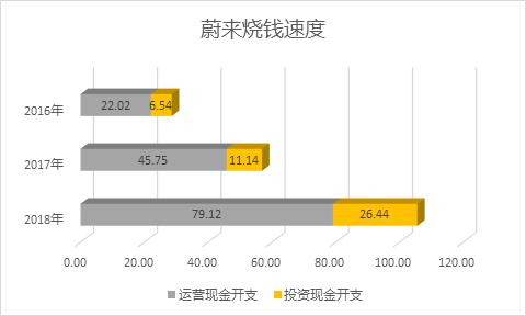 2018年,蔚来全年资本开支和运营现金开支合计100亿,2019年全年数字还没有公布,但和这个数字也不会差距太大。