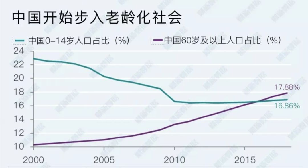 根据国家统计局公布的数据,截至2018年底,中国60岁及以上人口近2.5亿,占总人口的18%,占比连续三年超0-14岁人口比重。其中65岁及以上超1.6亿,占比12%。