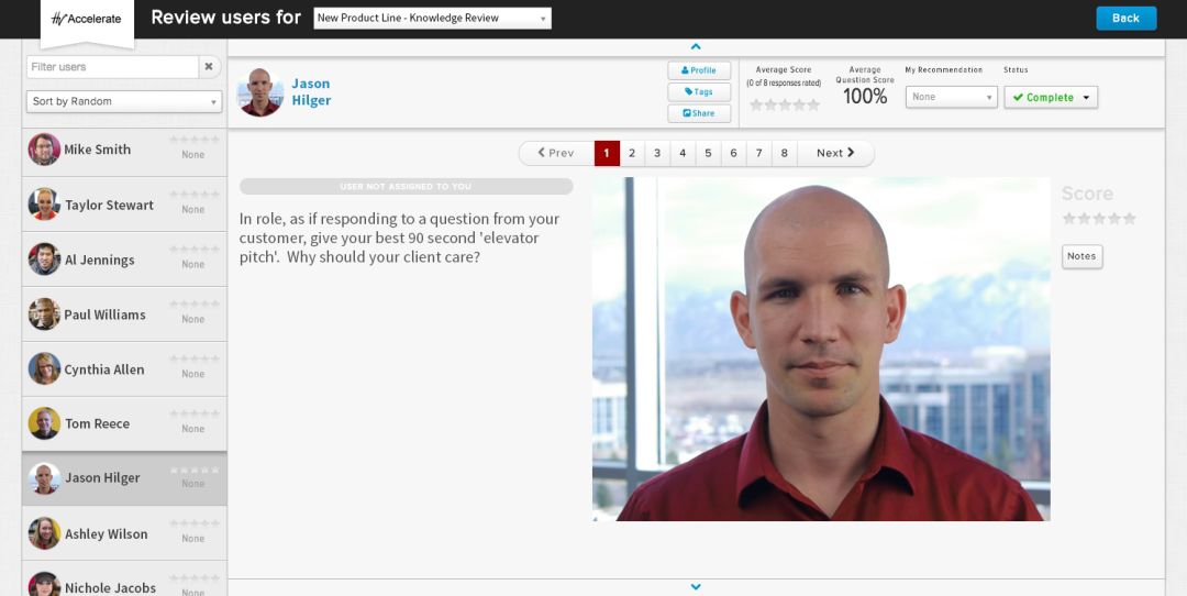 HireVue 用户界面。