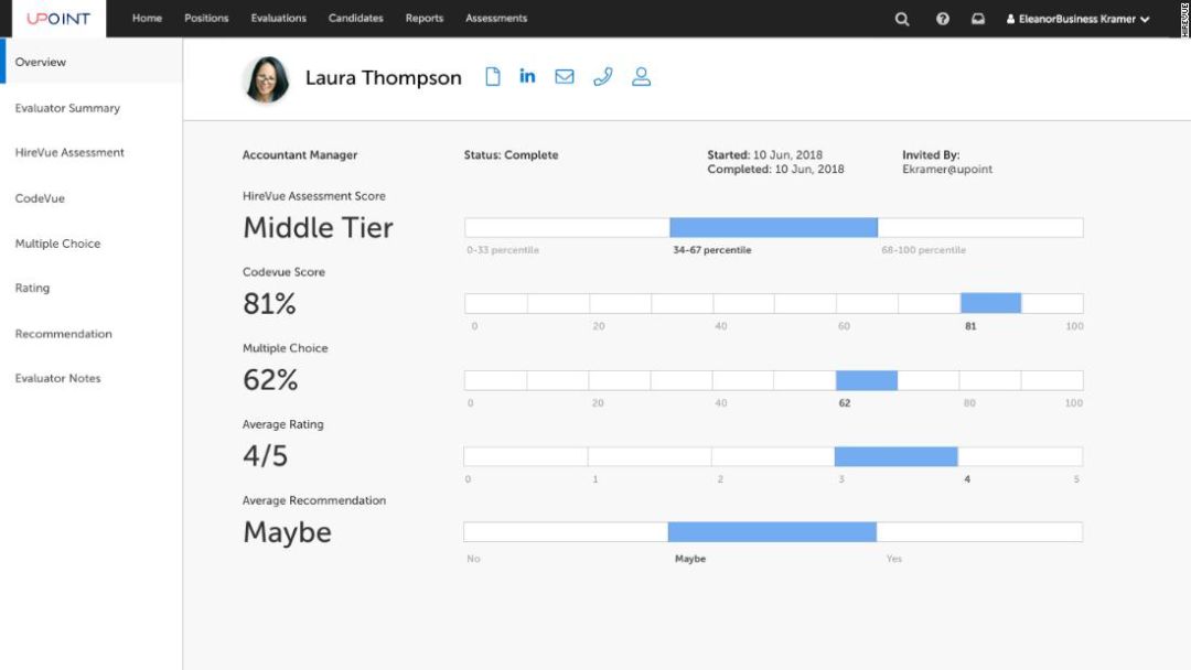 所有环节结束后,AI 会综合以上每一个步骤的成绩,利用算法作出最终判断,通过测试的人才有可能进入人工挑选环节。