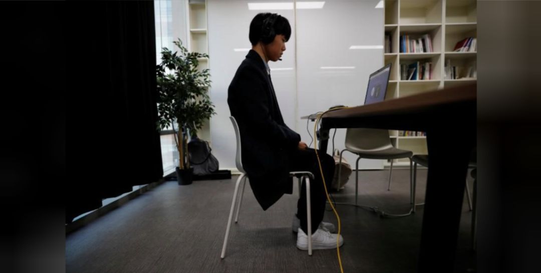 管理学专业的 Kim Seok-wu 正在演习 AI 面试流程。图源:路透社。