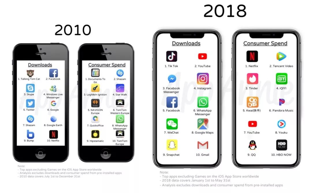 在桌面时代应用更多的是提高效率的办公软件,而到了移动时代,应用则是娱乐、社交类软件。