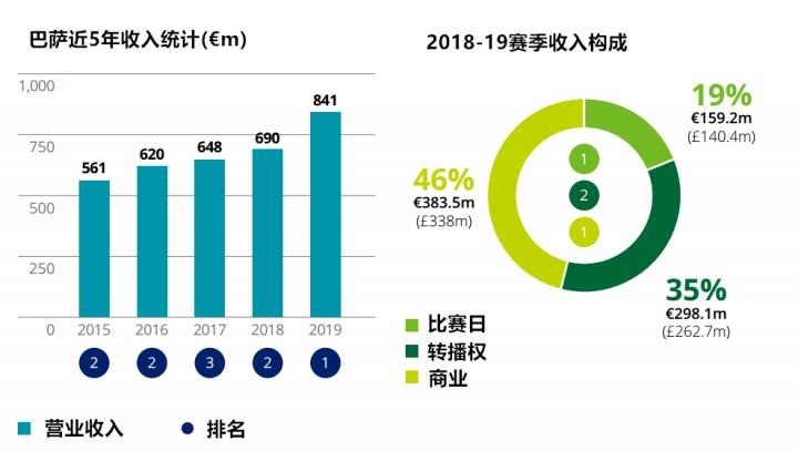 2017-18赛季,皇马成为了世界上第一个营收超过7亿的俱乐部。然而仅仅一年之后,巴萨就成为了第一个营收破8亿的俱乐部,还史上首次登顶了俱乐部收入榜的榜首宝座。