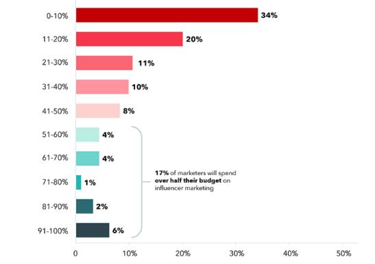 3. 17% 的公司将超过一半的营销预算花在网红身上。