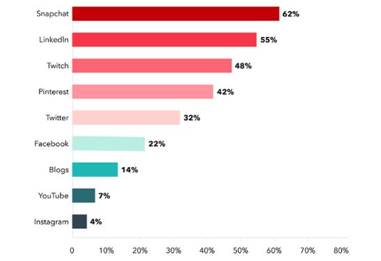 6. Snapchat 是网红营销最不受欢迎的平台之一。