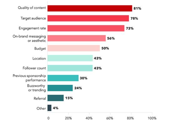 4. On-brand messaging.:评估影响者的声音和审美是否符合你的品牌风格。同样重要的是,研究过去的任何争议,并关注他们的语言,以确定是否有任何东西抛出有关品牌安全的红旗。