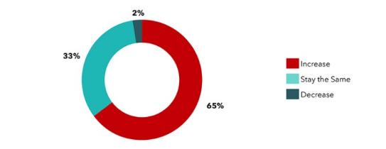 近三分之二的营销人员在 2019 年增加网红营销的支出。2018 年,只有 39% 的营销人员计划增加网红营销预算,这表明 2019 年网红营销的品牌投资已经大幅增加。