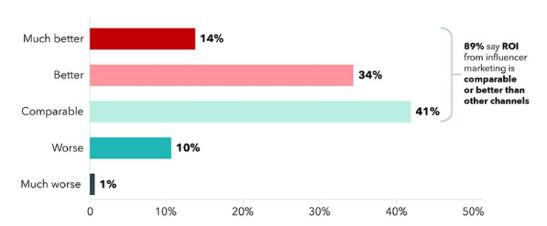 4. 89% 的人认为来自网红营销的投资回报率优于其他营销渠道。