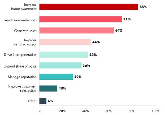 1. 增强品牌意识:影响者营销活动最受欢迎的目标是围绕品牌、产品或服务建立意识。品牌知名度通常通过印象、影响力和参与度来衡量。