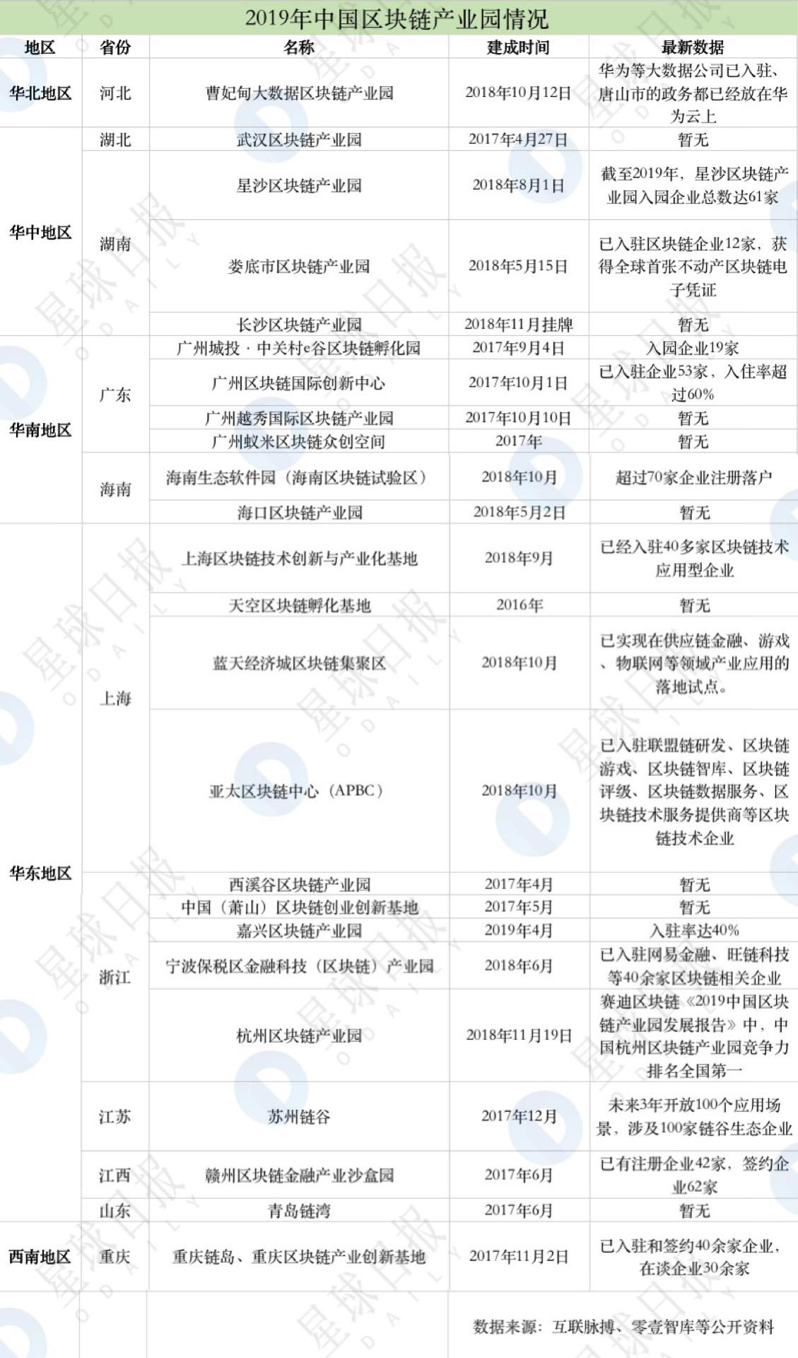 2019年还新增了一家产业园——浙江嘉兴区块链产业园。根据天天链讯报道,当前该产业园区的入驻率已达40%。
